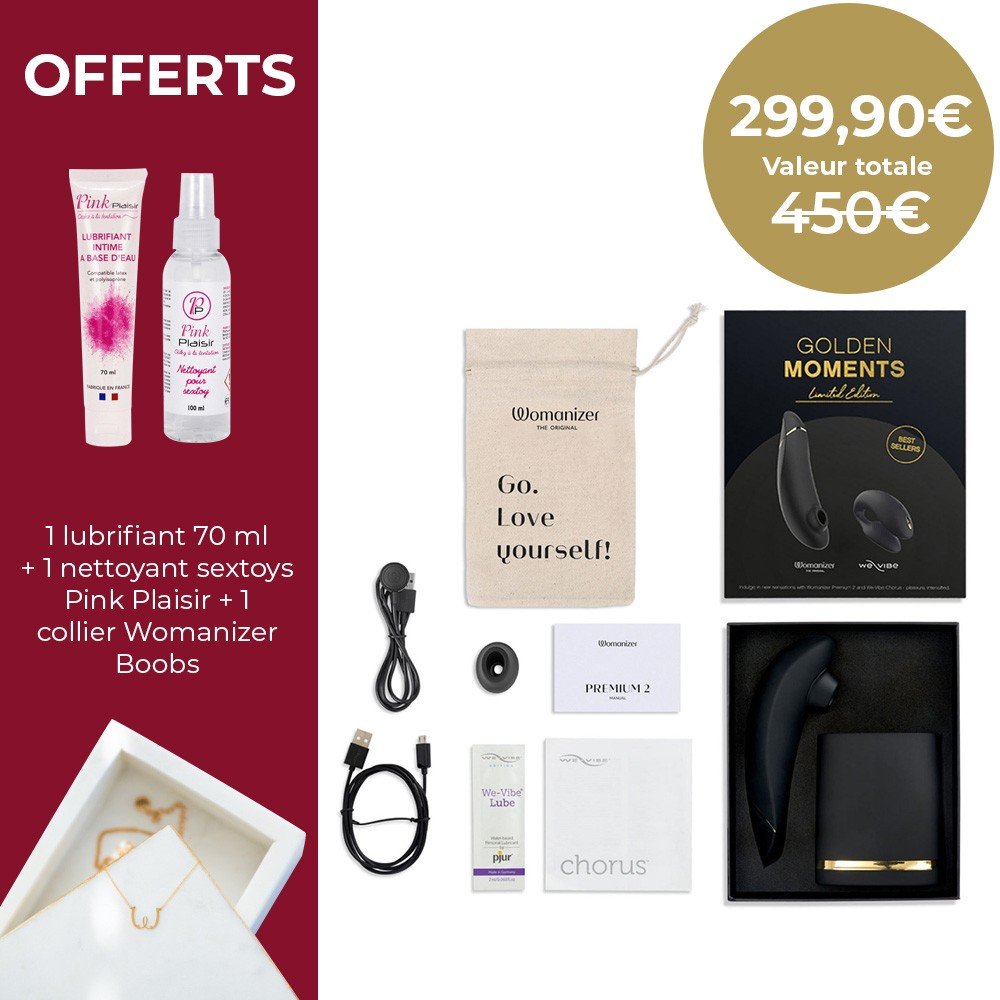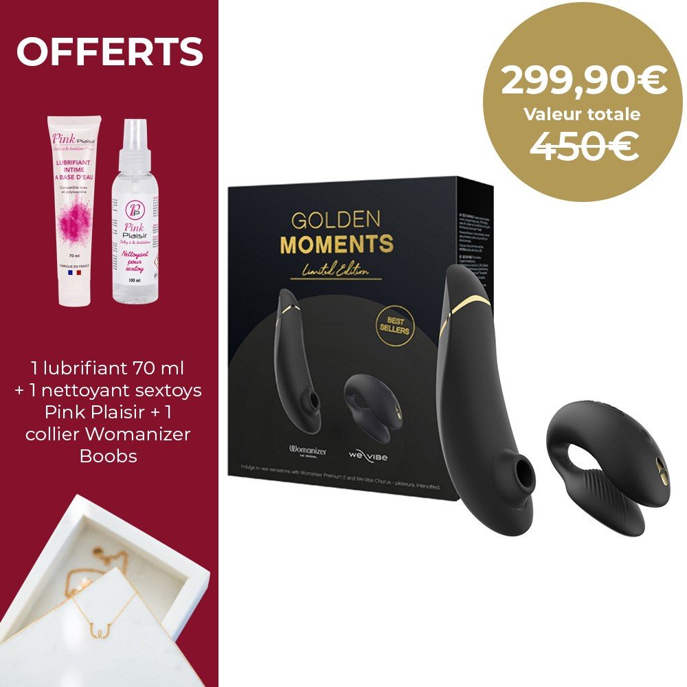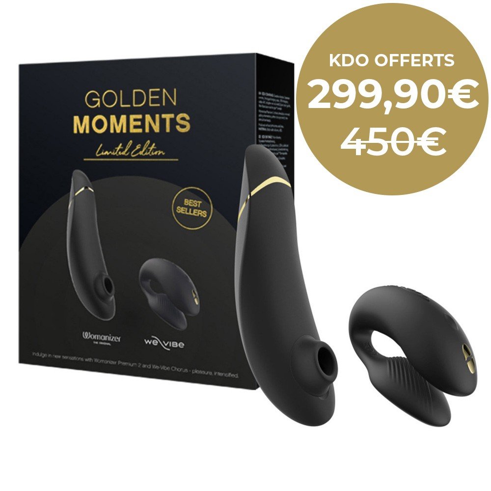 Bienvenue dans le monde de l'extase ultime avec le Coffret Golden Moments 2 ! Ce pack exclusif vous propose deux des sextoys les plus convoités : le Womanizer Premium 2 et le We-Vibe Chorus, le tout dans un design noir élégant orné de détails dorés réservé à cette édition limitée. Explorez un univers de plaisir et de sensations qui raviront les couples en quête de l'expérience parfaite. Avec une valeur réelle de 399,80€, ce coffret vous fait économiser 100€ tout en vous offrant une expérience inoubliable.