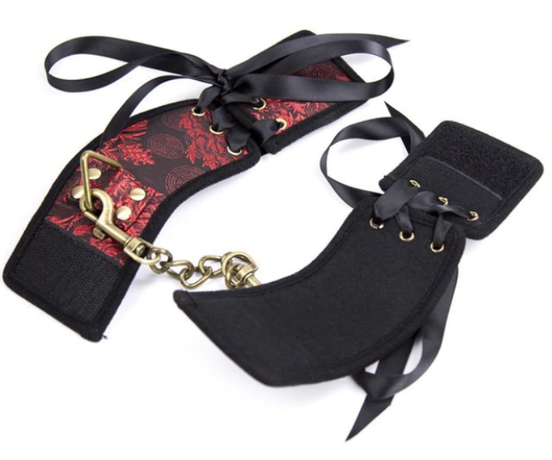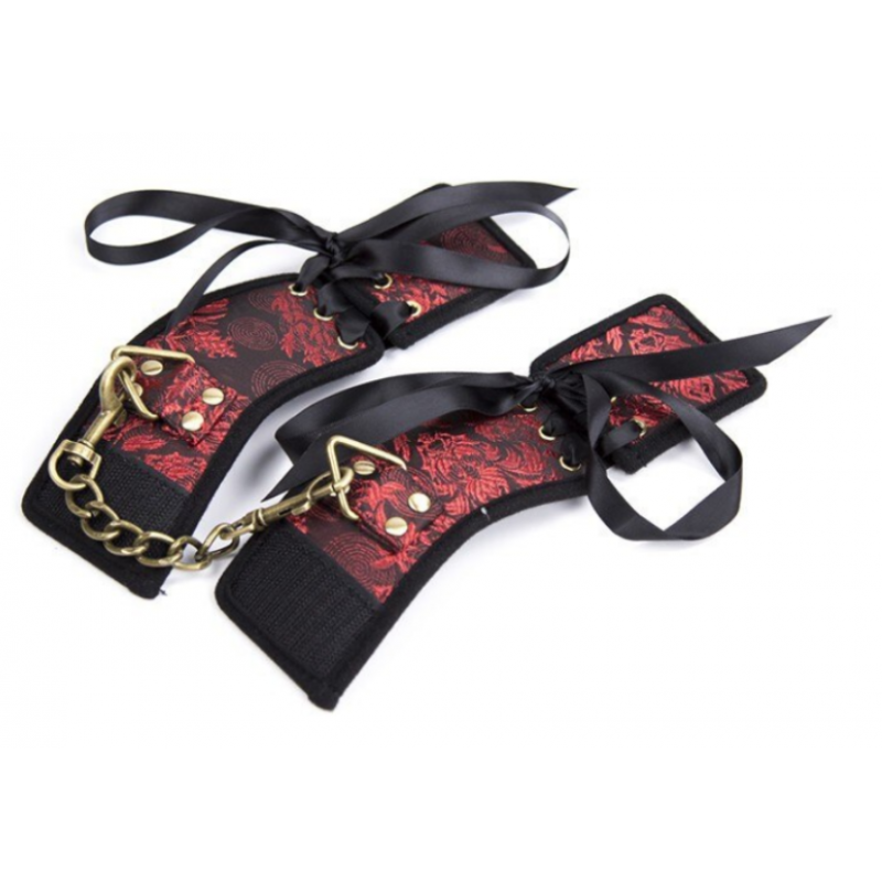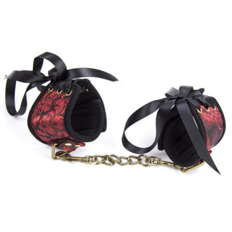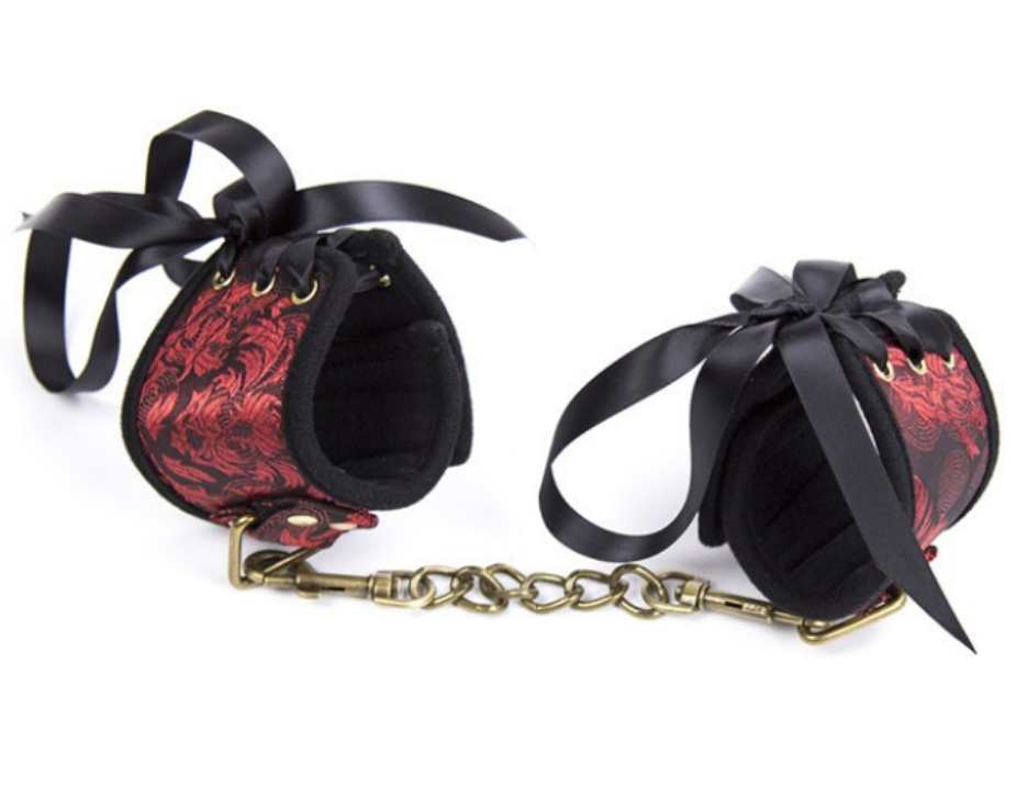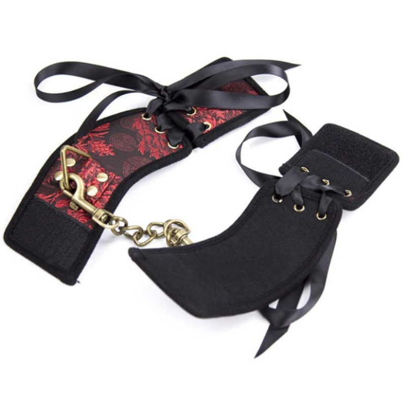 D'élégante menottes I Love You entièrement ajustables pour s'adapter confortablement à vos chevilles. Elles se ferment grâce à un scratch facile à utiliser, et possèdent un laçage permettant un ajustement sur mesure maximal. Les menottes sont reliées par une chaîne métallique solide, qui offre la possibilité de les attacher à différents accessoires tels que des cordes, des crochets, ou même des poids, pour une expérience personnalisée.