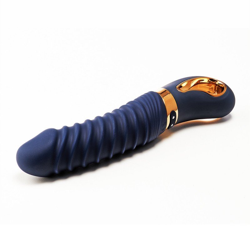 Le Nereos est conçu pour offrir une expérience de plaisir exceptionnelle. Fabriqué en silicone bleu foncé avec des détails dorés, il s'harmonise parfaitement avec le style élégant des autres jouets de la collection Goddess. Sa poignée en forme d'anneau, avec un revêtement en métal, offre une prise en main facile et un aspect luxueux. Le silicone liquide utilisé pour sa conception confère au vibromasseur une douceur et une sensation soyeuse au toucher. Sa tige flexible et incurvée est spécialement conçue pour stimuler le point G, avec de nombreuses petites crêtes stimulantes ajoutant une dimension excitante à votre plaisir.