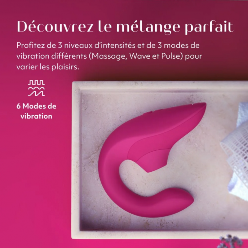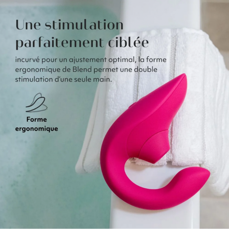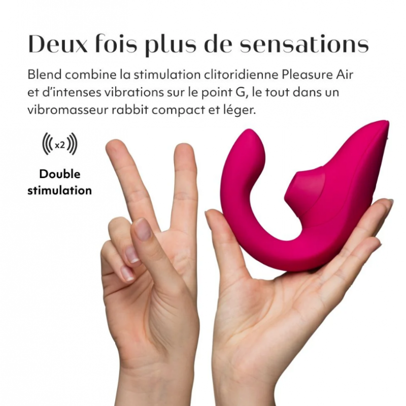 Il stimule simultanément le point G par des vibrations internes et le clitoris à l'aide de douces vagues d'air pulsé grâce à la technologie Pleasure Air. Ce sextoy est idéal pour découvrir les orgasmes combinés. Avec deux moteurs contrôlables indépendamment, Blend permet une personnalisation totale du plaisir, s'adaptant ainsi à vos envies et besoins.