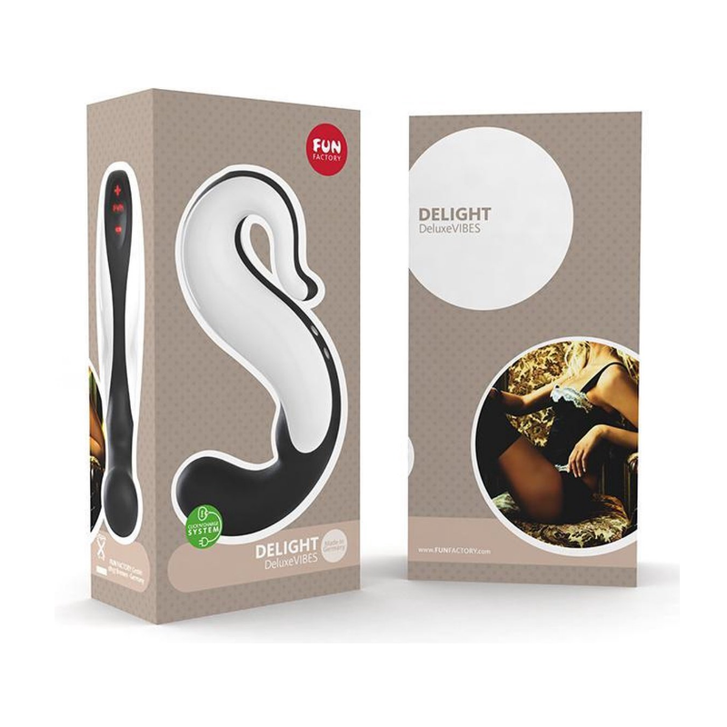 La forme bouclée du Delight permet une prise en main ergonomique : tenez-la facilement avec deux doigts, tandis que la commande lumineuse se contrôle aisément avec votre pouce. La vague supplémentaire procure une stimulation ciblée du clitoris, tandis que le Delight, conçu à 100 % en silicone médical de haute qualité, masse délicatement le point G grâce à sa courbure étudiée. Les côtés en plastique lisse et doux pour la peau offrent une sensation agréable au toucher. De plus, ce vibromasseur ne nécessite pas de piles !