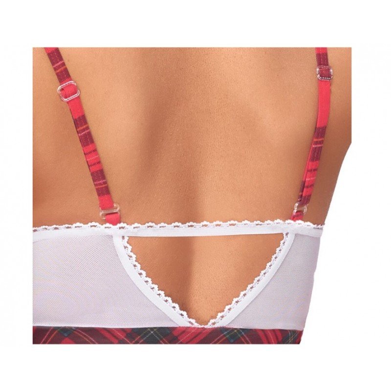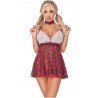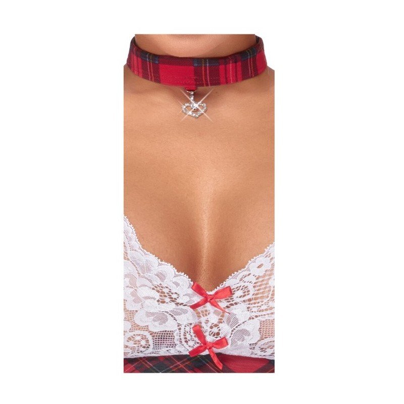 Réveillez votre côté coquin avec ce déguisement d'étudiante au charme irrésistible. La combinaison parfaite entre la dentelle délicate et le motif écossais classique apporte une touche séduisante et espiègle. Avec son haut en dentelle blanche orné d’un joli nœud rouge et sa jupe fluide à carreaux, cette tenue saura captiver tous les regards.