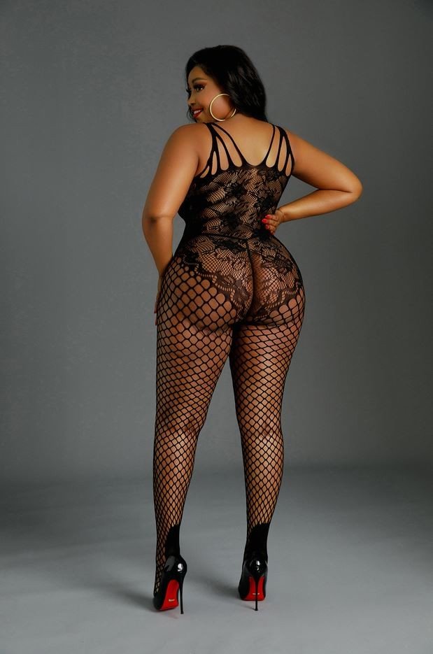 Cette combinaison qui mixe dentelle et résille saura agrémenter vos soirées intimes...