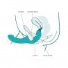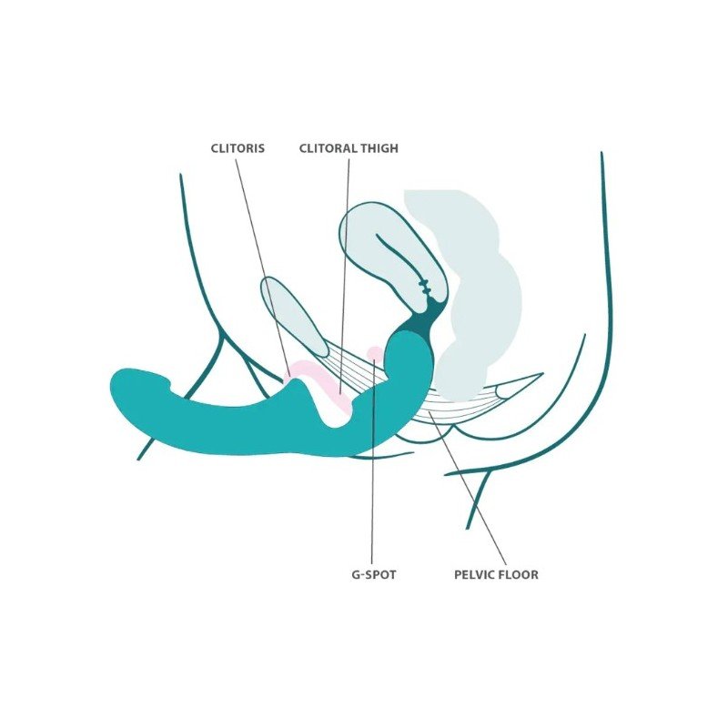 La partenaire insère la partie la plus courte dans son vagin, celle-ci restant bien en place grâce à une base légèrement saillante. Elle peut ensuite pénétrer son/sa partenaire avec la partie longue. Le plaisir est partagé à double titre : stimulation du clitoris et du point G pour l’une, massage du point P ou du point G pour l’autre.
