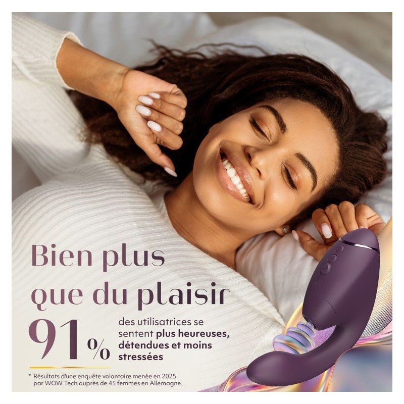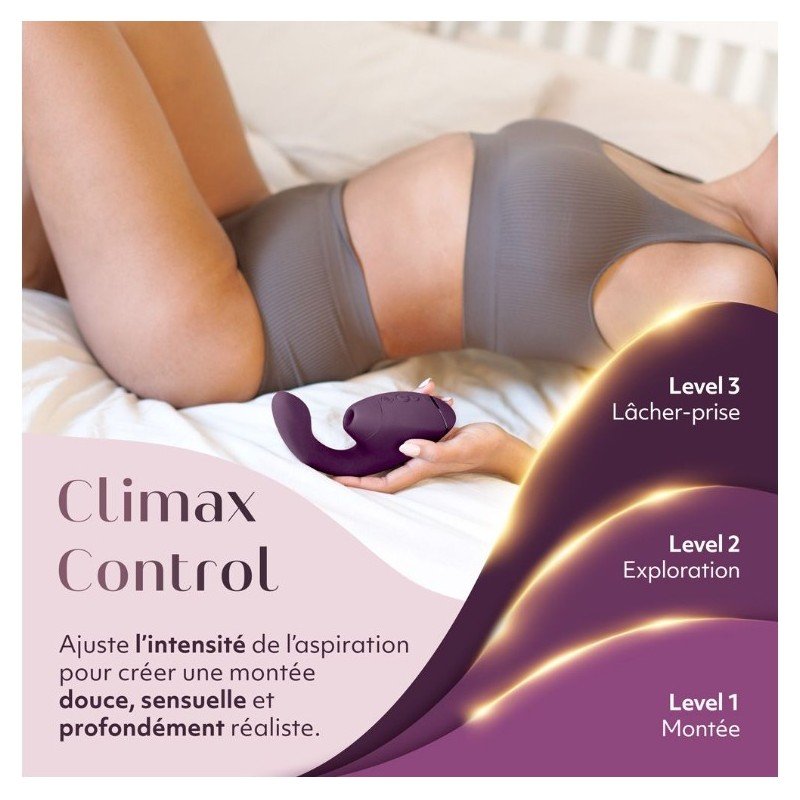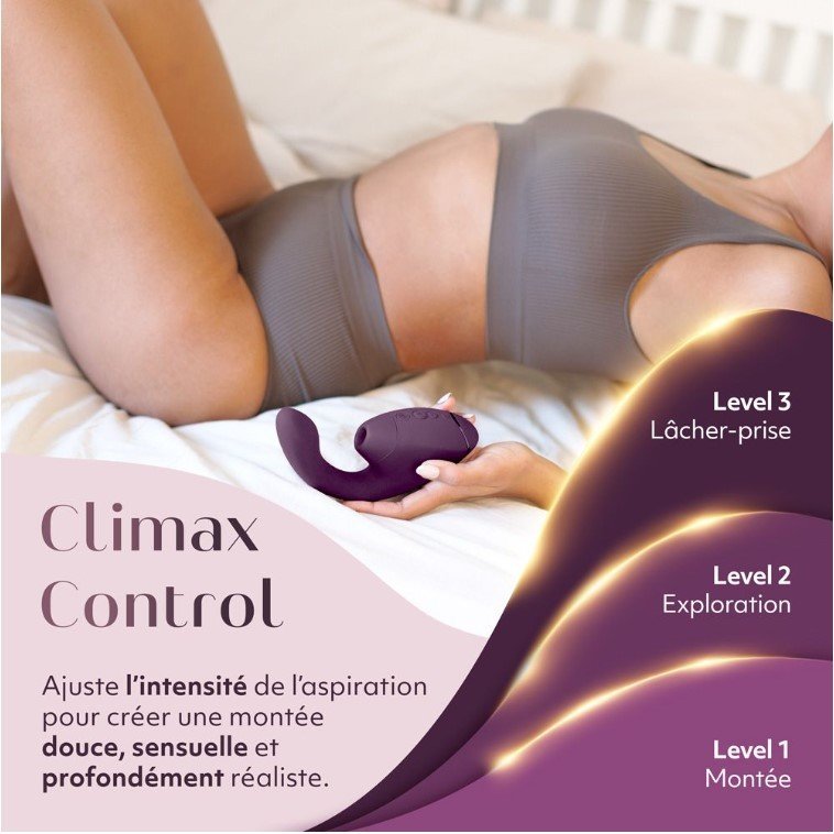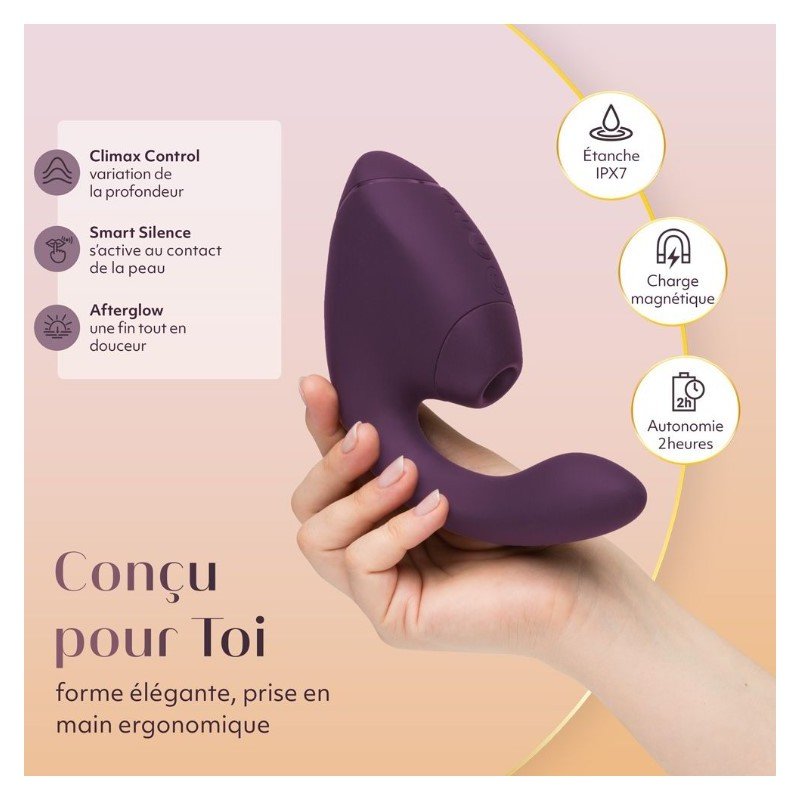 Découvrez un bijou de technologie sensuelle : le Next Duo, né de la rencontre entre le savoir-faire de Womanizer et la puissance vibrante de We-Vibe. Son secret ? Une stimulation double et synchronisée : le clitoris est caressé par la technologie révolutionnaire 3D Pleasure Air, tandis que le point G s’embrase sous l’effet de vibrations profondes et précises.
