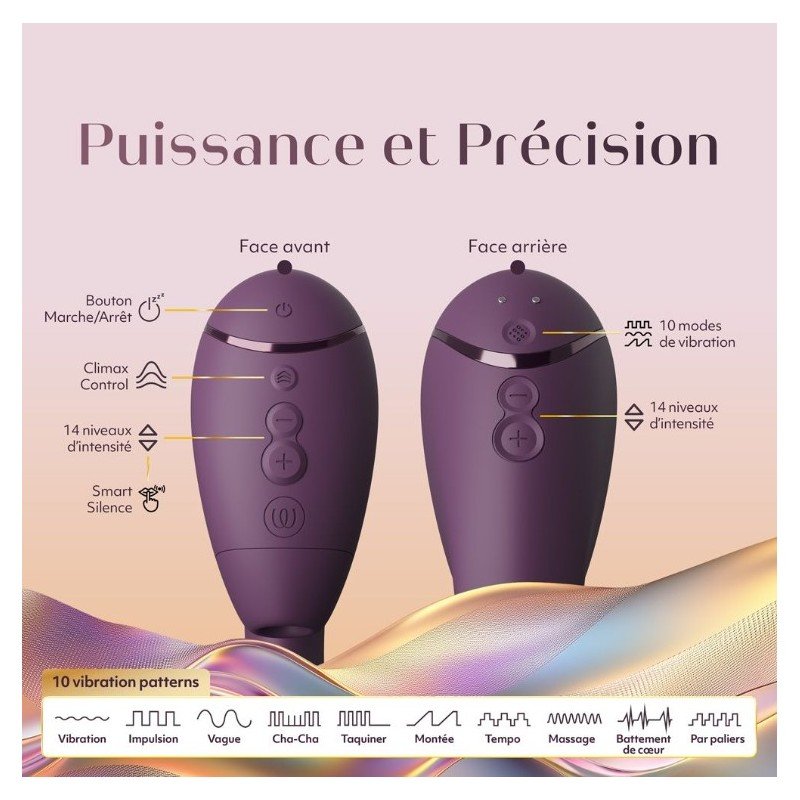 Chaque détail a été pensé pour s’adapter à votre corps : courbes ergonomiques, silicone ultra-doux, silence absolu et contrôle intelligent du plaisir. Vous choisissez votre rythme parmi des modes infinis de sensations, pour des orgasmes mixtes plus naturels, plus puissants, plus intimes.