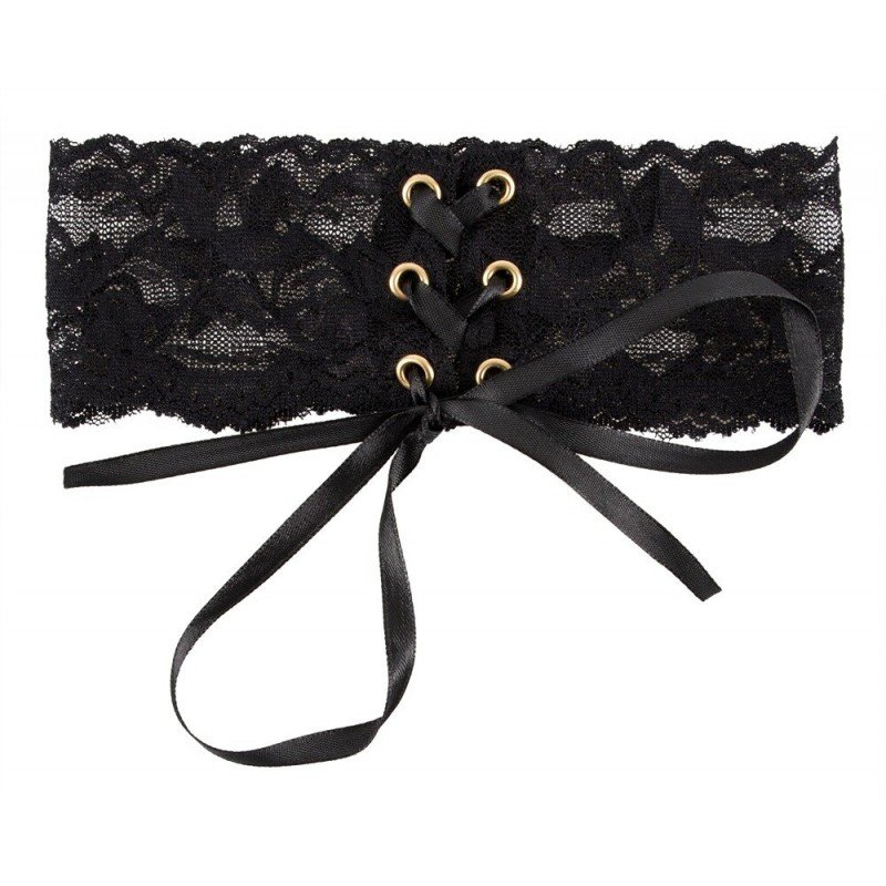 Ajoutez une touche de caractère et de sensualité à toutes vos tenues avec ce collier en dentelle noire. Son ruban délicatement travaillé est sublimé par un laçage en satin à travers six œillets, offrant un ajustement parfait et un style résolument séduisant.