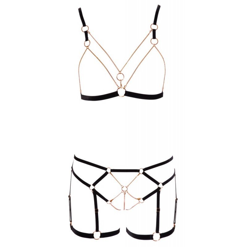 .Entièrement modulable grâce à ses chaînes et jarretières amovibles, cet ensemble transforme chaque mouvement en une promesse de plaisir.
