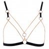 Conçu en rubans de velours élastique d'un noir profond, il est magnifié par des chaînes à anneaux d'un chic absolu en coloris or rose.