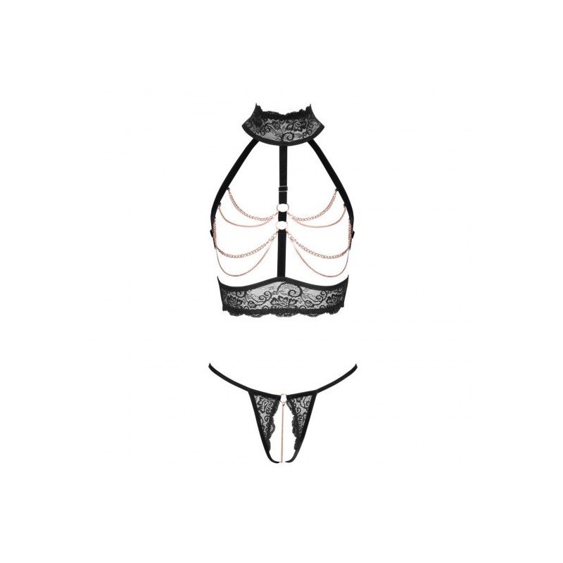 L’art de la séduction signé Abierta Fina. Laissez-vous envoûter par cet ensemble noir et or rose, une véritable ode à l'érotisme.