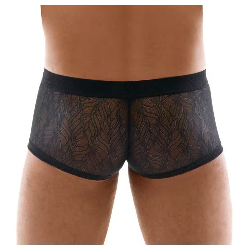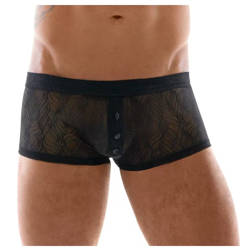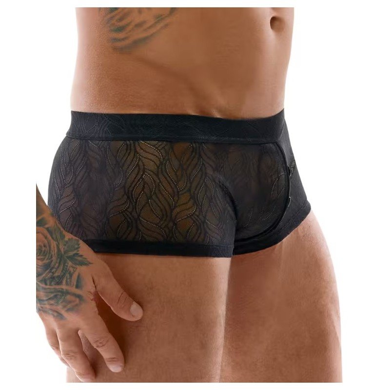 Affirmez une sensualité raffinée avec ce boxer homme en dentelle noire transparente.