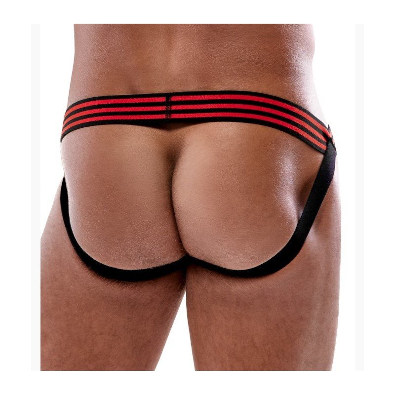 Affichez un style sportif et audacieux avec ce jockstrap homme au contraste noir et rouge percutant.
