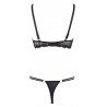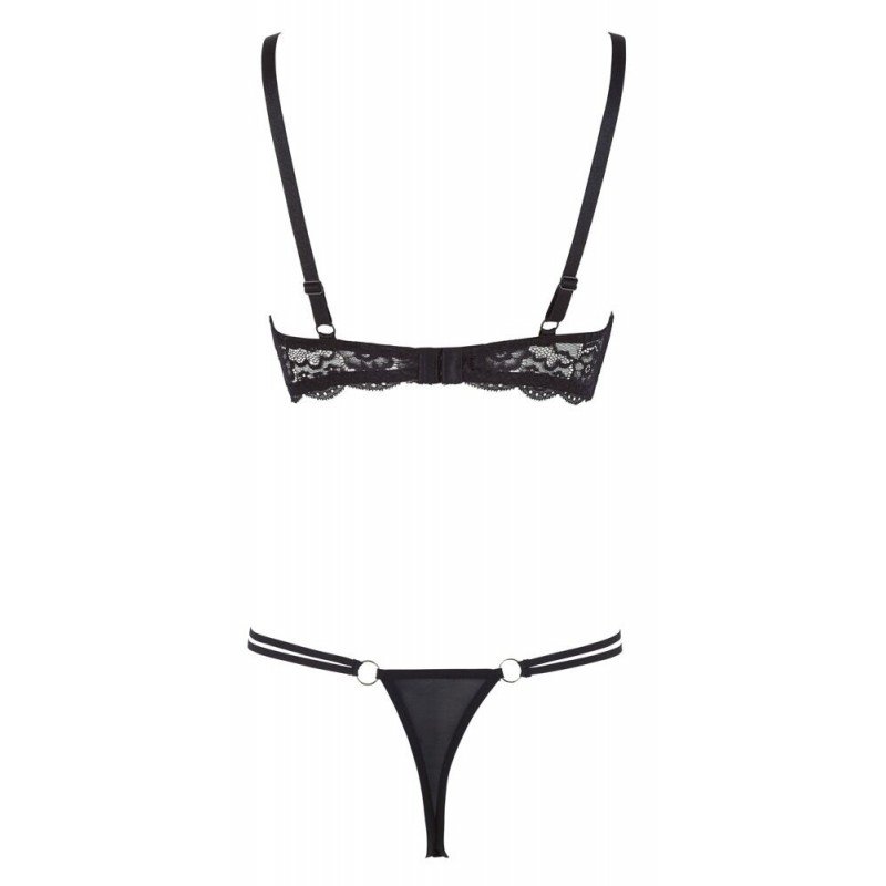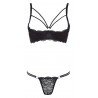 Sublimez votre silhouette avec cet ensemble en fine dentelle noire, délicatement orné d’anneaux argentés pour une touche audacieuse et élégante. Le soutien-gorge à armatures, légèrement doublé, offre un maintien séduisant tout en mettant le buste parfaitement en valeur. Ses doubles bretelles extensibles apportent confort et ajustement idéal. Un modèle irrésistible qui allie sensualité et raffinement.