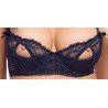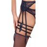 Ensemble élégant et audacieux composé d’un soutien-gorge à armatures, d’un porte-jarretelles et d’un string Rio, avec jarretelles incluses. Réalisé en fine dentelle stretch douce, il séduit par ses détails raffinés d’ouverture et ses découpes sensuelles sur les demi-bonnets. Les bretelles et les 8 jarretelles réglables assurent un ajustement parfait, tandis que le tissu doux et élastique offre un confort optimal. String Rio ouvert sur le devant. Bas non inclus.