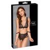 Ensemble 3 pièces : soutien-gorge souple, slip taille ouverte et 2 menottes souples