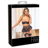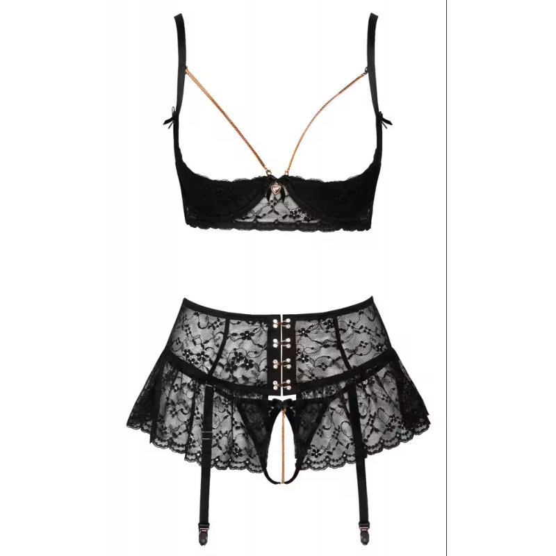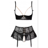 Ensemble lingerie 3 pièces : soutien-gorge, jupe porte-jarretelles, string ouvert