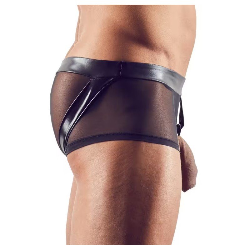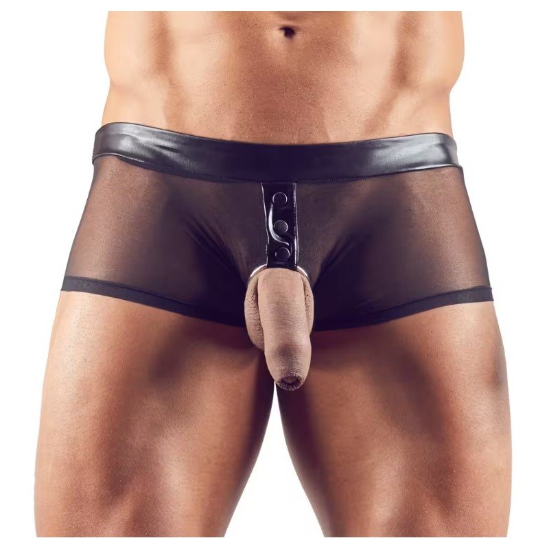 Le détail central, souligné par une finition effet cuir et un anneau métallique, apporte une touche fetish irrésistible tout en mettant en valeur le corps masculin. Sa coupe ajustée souligne les courbes et offre un style à la fois provocant, élégant et terriblement séduisant.