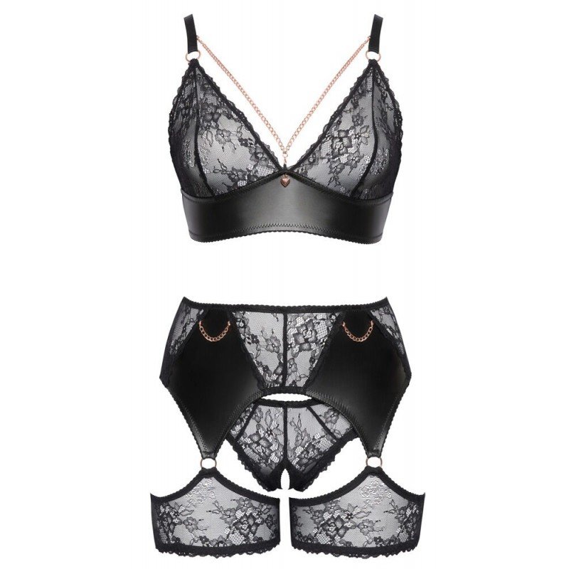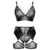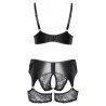 Ensemble 3 pièces : soutien-gorge, slip ouvert et porte-jarretelles