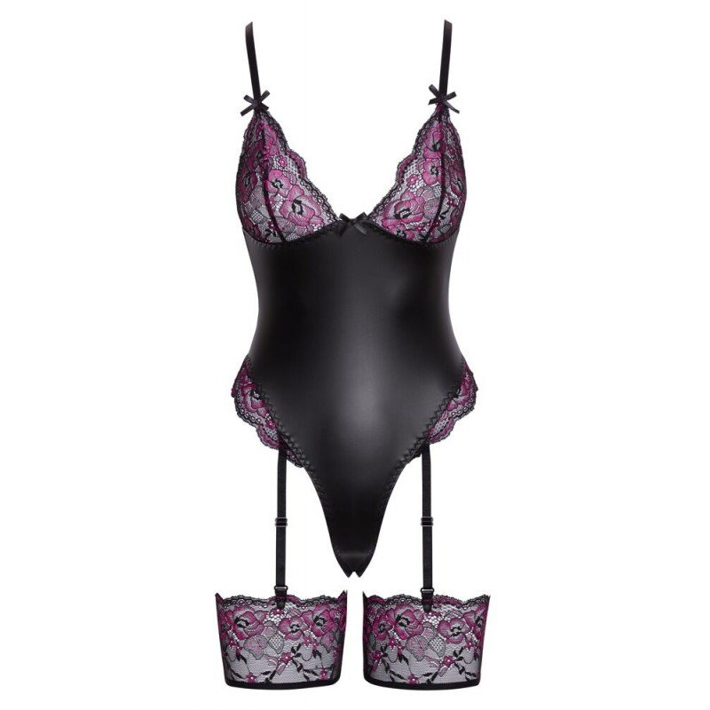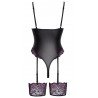 Rachelle - Body Dentelle & Simili Cuir Noir & Mauve - Cotteli Lingerie