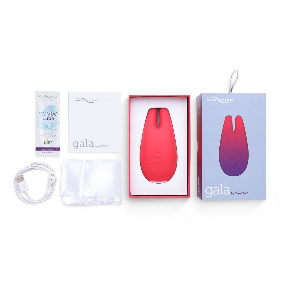 Contenu : 1x stimulateur clitoridien Gala, 1x câble de recharge USB, 1x guide de démarrage rapide, 1x pochette de rangement, 1 x échantillon de lubrifiant à base d'eau Pjur.